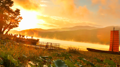안성 고삼 호수는 잔잔한 호수에 피어오르는 물안개가 신비로운 분위기를 자아내는 곳입니다. 고삼 호수에서 바라보는 일출은 붉은 태양이 물안개와 어우러져 몽환적인 풍경을 연출합니다.