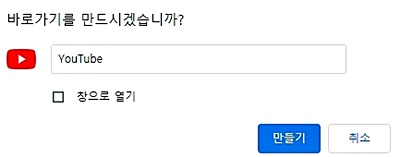 이번에는 웹브라우저 창에서 유튜브 홈페이지에 디렉트로 연결되는 아이콘을 만들어 보겠습니다.